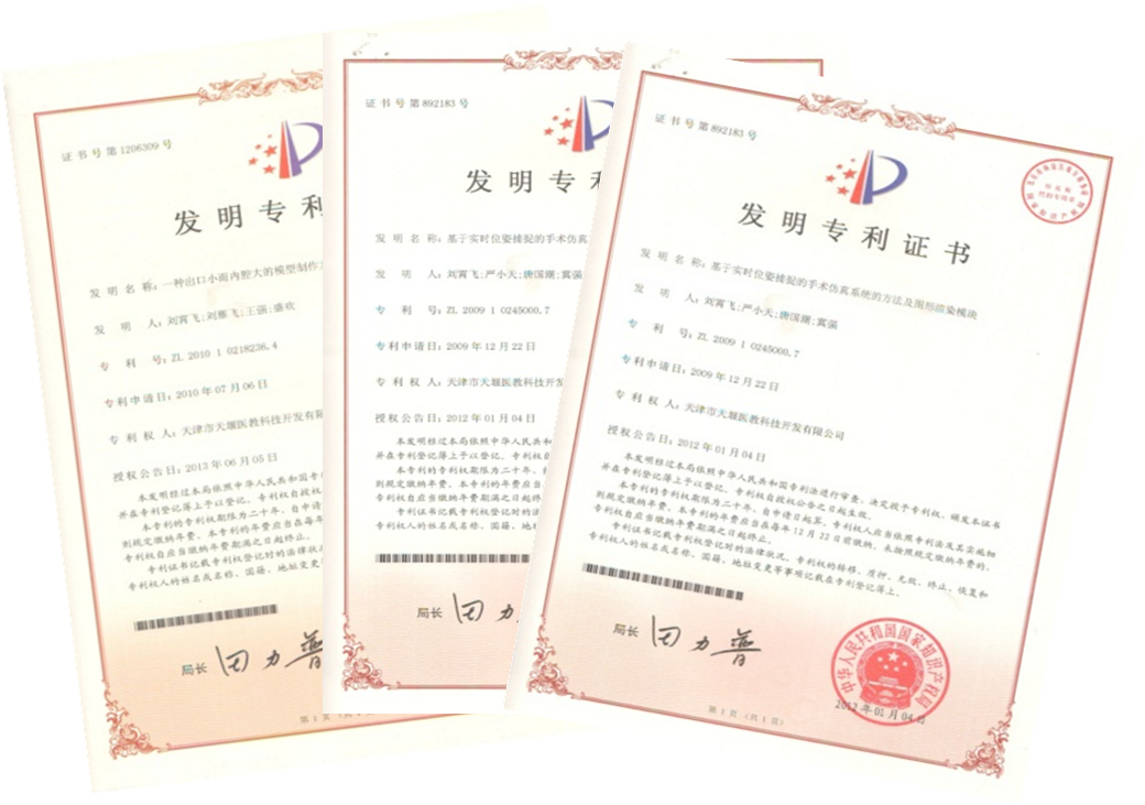 到目前为止,天堰科技已申请领域内相关知识产权1263项,其中发明专利164项,软件著作权203项;注册商标百余项,并被评为天津市著名商标;多项产品被录入国家自主创新产品名录;急危重症救治仿真平台、智能化战创伤模拟训练系统等产品多次获得省部级科技进步一等奖、三等奖,相关前沿技术达到国际领先水平,打破国际垄断,有效实现了进口产品替代,成为国内医学模拟教学行业的名牌企业,为国内医学模拟教学行业发展做出突出贡献。同时,天堰科技积极开拓国际市场,多项产品获得CE欧洲产品认证,实现了公司产品进入国际市场,打造世界一流的产品体系。