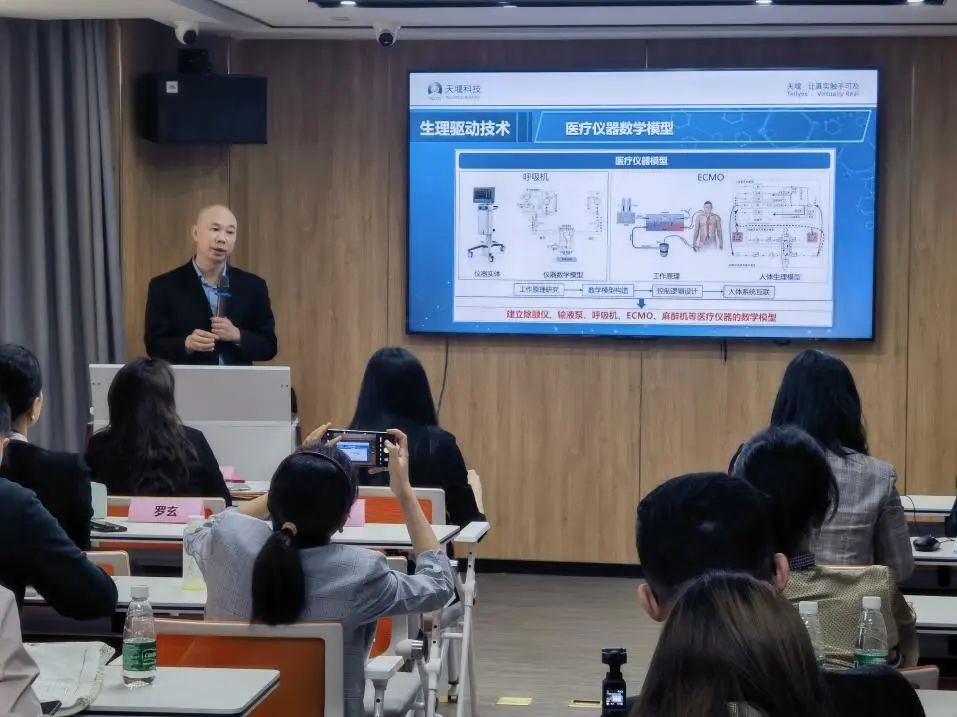天堰科技技术总监周靖杰在模拟教育新科技论坛中,分享“生理驱动技术及其在医学模拟教学中的应用”专题讲座,重点阐述生理驱动技术的医学模拟教学中的应用优势和意义,天堰科技已经打造出包括急救模拟人、战创伤模拟人、麻醉模拟人、模拟产妇、模拟新生儿等系列高端模拟教学产品。