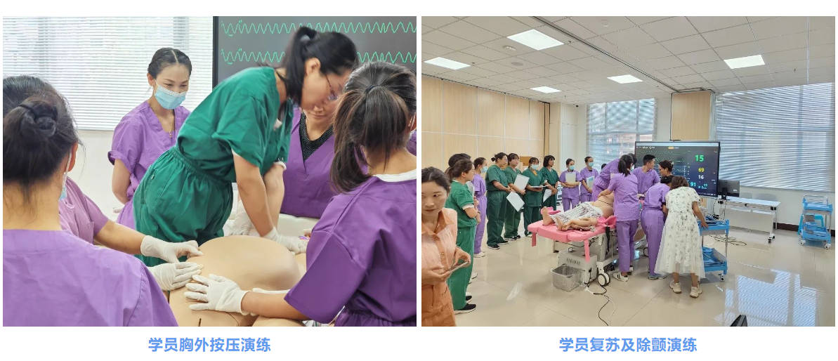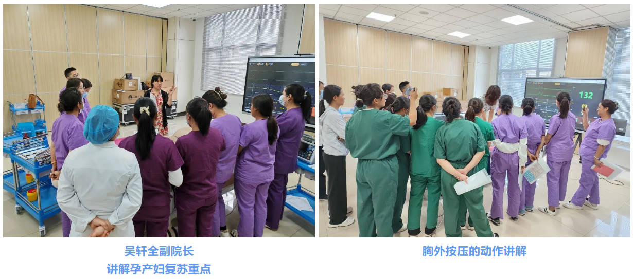 实操的重头戏是天堰科技模拟人女娲支持的孕产妇复苏部分,吴轩全副院长全程耐心的为学员讲解流程和救治要点,强调多学科协作和统一调度指挥在救治过程中的重要性;她反复重申:对于基层医务人员,训练的重点应该放在心脏骤停的识别、启动应急反应系统、心肺复苏的流程和手法、复苏性剖宫产的时机掌握、除颤、急诊抢救用药等等危急情况的应急处置能力和基础技能操作。天堰的技术人员全程配合导师的授课,并协助操作模拟人,得到了老师学员的一致认可。