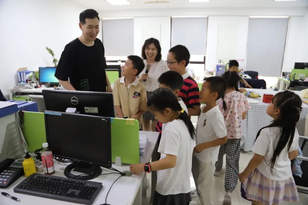 小朋友们有序参观办公场所,了解爸爸妈妈们的办公环境