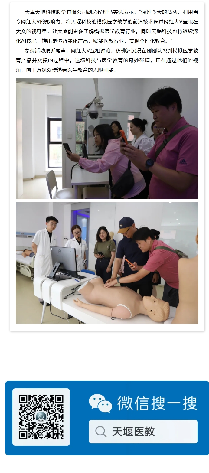 百万粉丝大V网红打卡参观天堰科技,探秘模拟医学教育